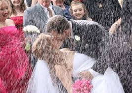 Hoje em dia em algumas igrejas é proibida essa pratica pois muitas pessoas morrem de fome no mundo e o povo taca arroz nos outros na saída do casamento.. ja ouvi noiva dizer que quando chegou na lua de mel tinha arroz em todos os poros srrs Prefiro bolhinhas de sabão! srsr